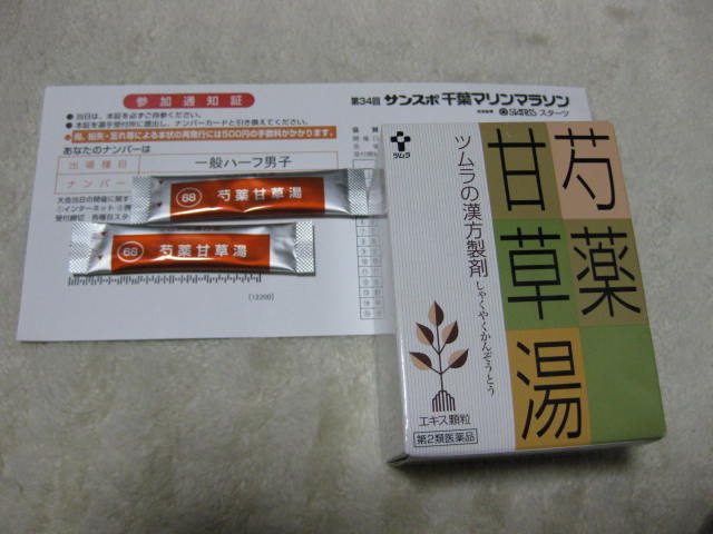 漢方だけど飲んだら10-15分で痙攣が治まっちゃうという、即効性のある薬らしい。これを事前に飲み、さらに持って走ることで安心感。