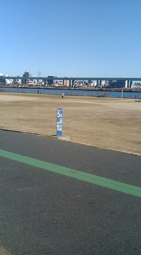 今日はここからのスタートです。小松川橋近辺.荒川マラソンではこの近辺が折り返し地点になりますね~。