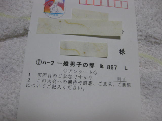 この大会は、ランネット申し込みではなかったので、昨年は申し込み方がわかんなくて駄目だったんですが、今年は、近くのスポーツセンターで、申込書がもらえるよとお友達から教えてもらったので、速攻申し込んどきました。